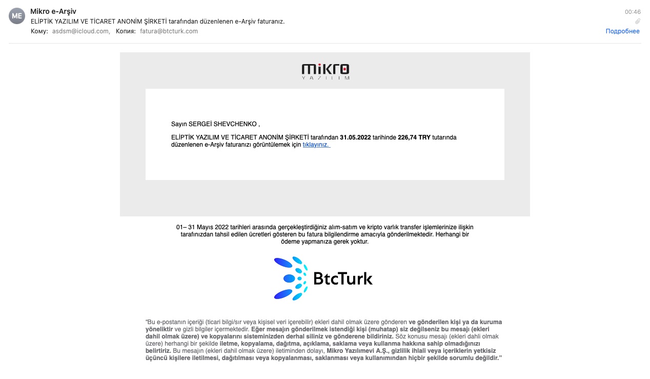 Here is the beginning of correspondence: System (BtcTurkPro)