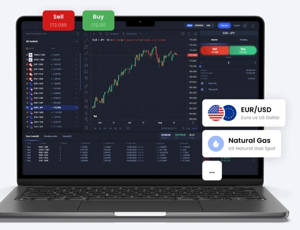 | Types of assets | ForexMajor, minor, and exotic currency pairs IndicesGlobal stock market indices StocksCFDs on major company stocks CommoditiesEnergy, metals, agricultural products CryptocurrenciesBitcoin, Ethereum, and major altcoins ETFs fundsExchange-traded funds across multiple sectors |
