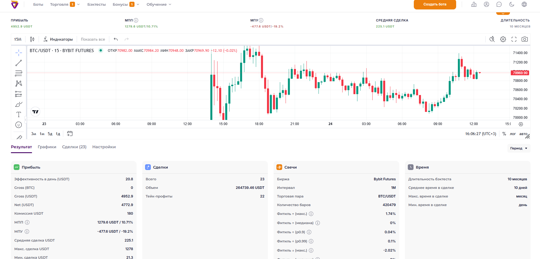 Платформа прикольная, настраиваю ботов без кодинга. Всё летает, стратегии ставятся и тестируются довольно быстпро. Сейчас проверяю свои страты и вижу в каких моментах можно было повысить качество своих решений.